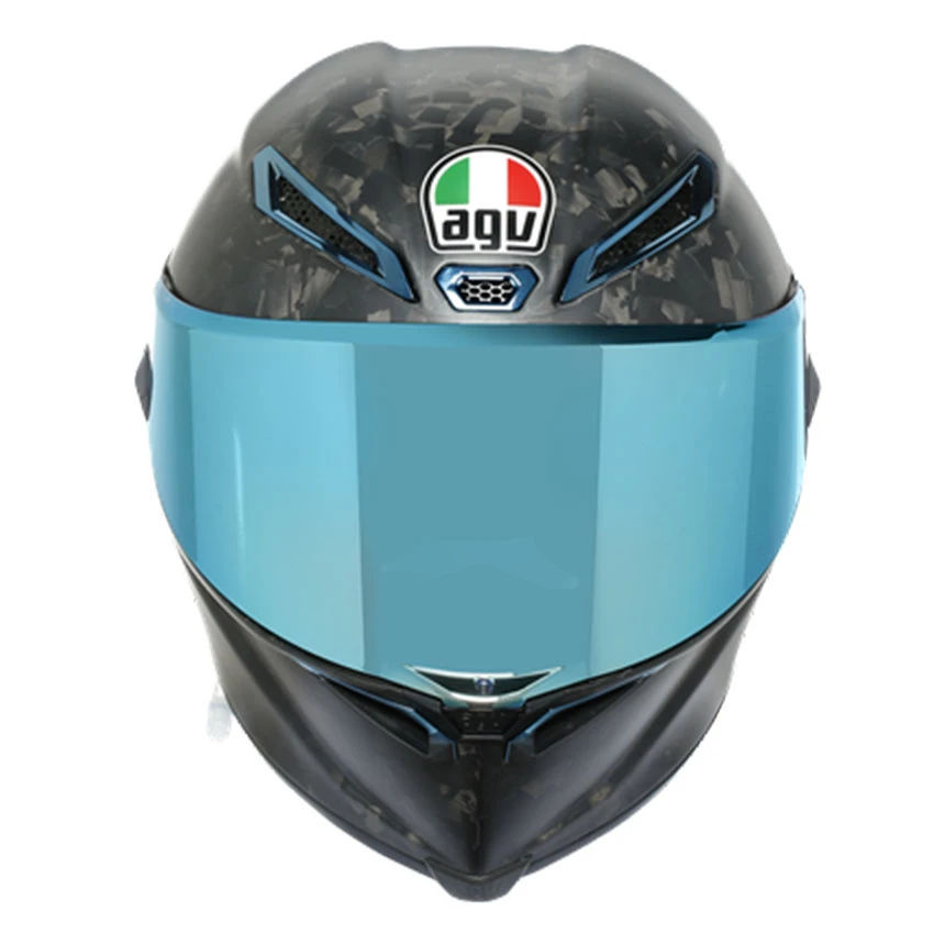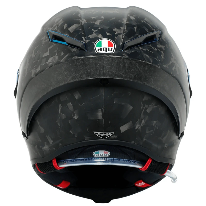 The most advanced racing helmet in the world, in a special edition that brings the future of performance to the present day. The AGV Pista GP RR Futuro Carbonio Forgiato combines all the characteristics of the helmet used by MotoGP™ riders with a brand-new shell made of Carbonio Forgiato. The higher density of this material, compared to woven carbon fiber, and its innovative construction through overlapping layers mean that it guarantees greater impact energy absorption, while maintaining the same overall weight for the helmet.