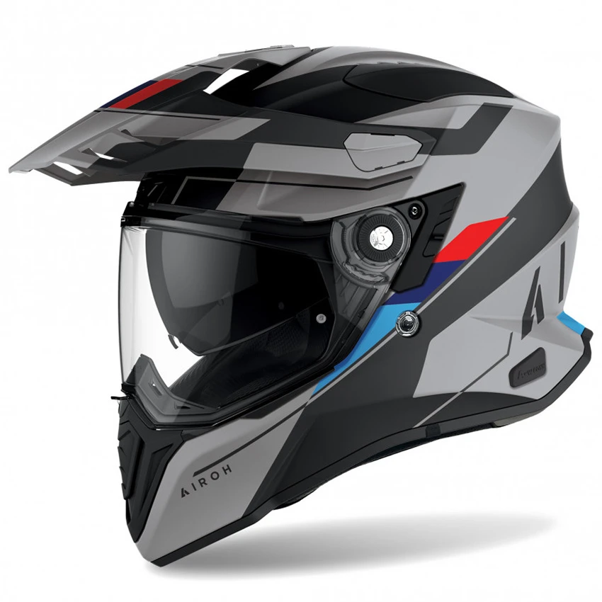 The Airoh Commander Skill matt adventure/dual purpose motorcycle helmet will adapt to any scenario. Its innovative design lets you easily change its nature. The peak is removable and so is the visor, allowing for 3 different configurations.