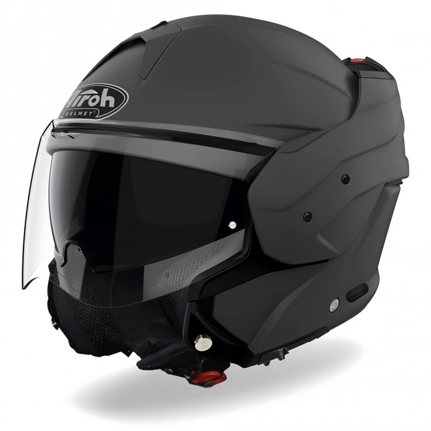 The Airoh Mathisse motorcycle helmet adds to its unique design a top-notch of high tech features. The 180° chin-guard rotation system enhances the versatility of an all-purpose helmet. The HRT (High Resistant Thermoplastic) outer shell has 2 different sizes to ensure a perfect fit, and an over-refined ventilation system provides the best comfort. The double P/J certification, retractable Sun Visor, micrometric retention system, Pinlock and Stop Wind make it the perfect choice to drive you everywhere with class.