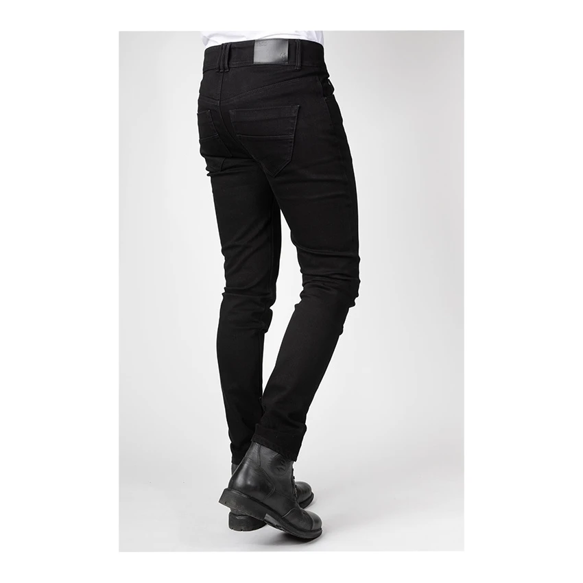Modern black men’s skinny motorcycle jeans. The Zero from Bull-It is extremely durable and tear resistant. With a high wearing comfort thanks to the single layer and 4 way stretch denim technology. A single layer motorcycle jeans are a lot stronger than a double layer jeans. In addition, it also feels a lot softer and provides more cooling. Supplied as standard with protectors on the knees.