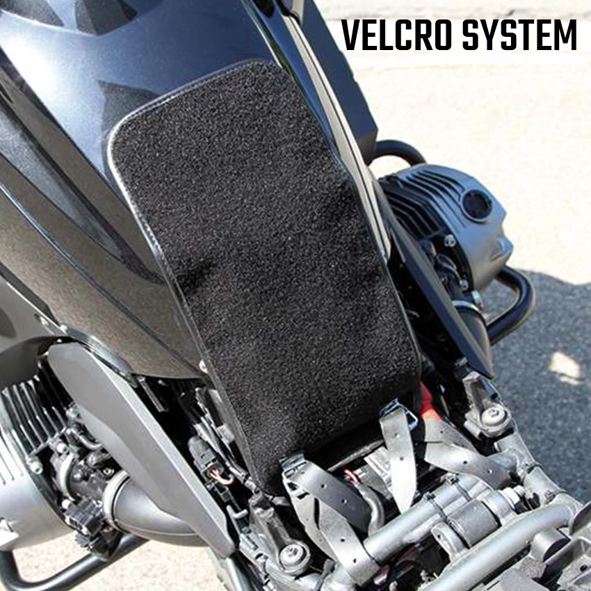 - Velcro mounting: the luggage can be fixed without any straps but with a high-quality Velcro mat, combined with a steering head fixing. The big advantages: uncomplicated attaching and detaching of the tank bag via the Velcro-system. Suitable for all bikes. Especially usable for bikes without tank ring fuel filler cap or metal tank.