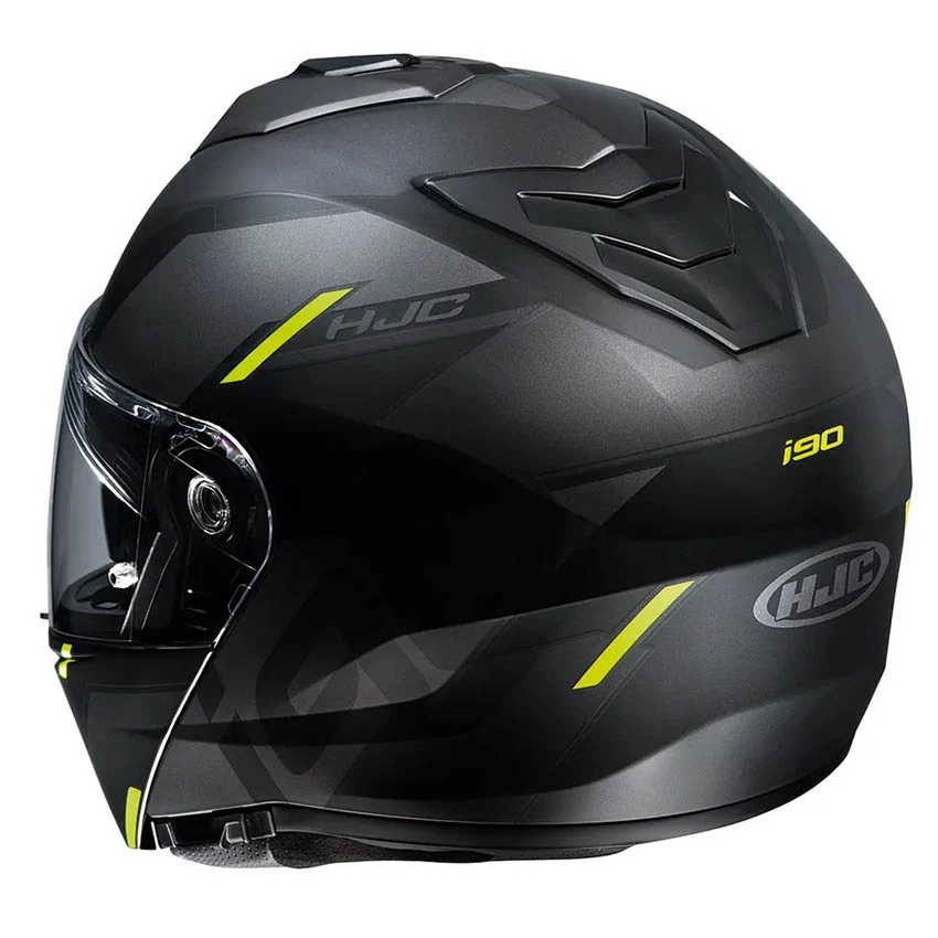 The HJC i90 Aventa has an Advanced Polycarbonate Composite Shell. Thanks to the 3 shell sizes, the I90 Aventa is compact and offers an excellent fit. The i90 has an HJ-33 visor, this visor is anti-scratch, anti UV radiation and pinlock prepared. The HJC i90 comes with an additional anti-fog lens. The integrated HJ-V9 sun visor runs across the whole width of the visor and therefore provides a wider vision. The Supercool lining is removable, washable and antibacterial. The I90 motorcycle helmet is prepared for the Smart HJC Bluetooth system.