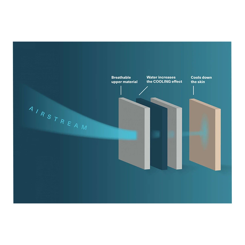 By evaporating under a mesh jacket, the iXS Bodycool Dry Vest cools down between 8 hours and 3 days depending on temperature and humidity. The vest performs best in low to medium humidity. The level of airflow determines the cooling effect. Zipper with handy Zip handle makes it easy to put on. Side panel is designed with a stretchy and breathable mesh for more freedom of movement.