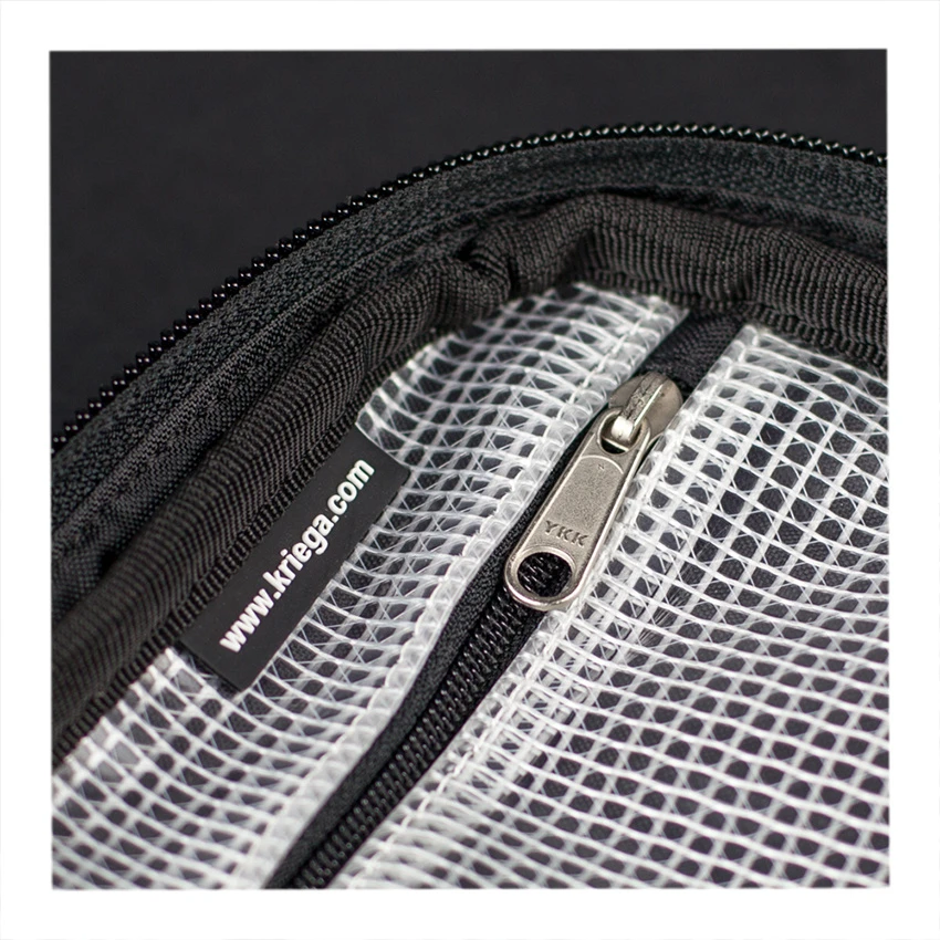 Optional/removable accessory pocket for Kriega backpacks and waist packs (water-resistant).