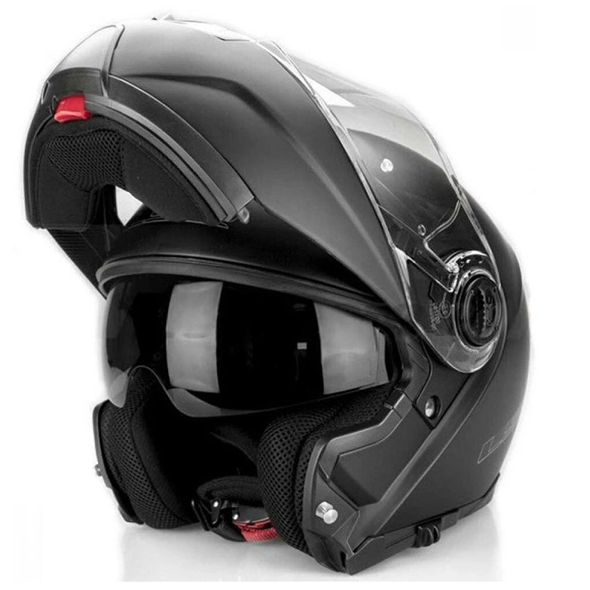 The LS2 Strobe is a middle-class system helmet with a thermoplastic outer shell. Together with the multi-density EPS inner shell, the impact is optimally absorbed. This modular helmet is also equipped with reflection parts. In addition to being safe, the LS2 is also comfortable. It has an integrated sun visor that is easy to operate on the side. The clear outer visor has an anti-scratch treatment and is prepared for an optional pinlock lens.