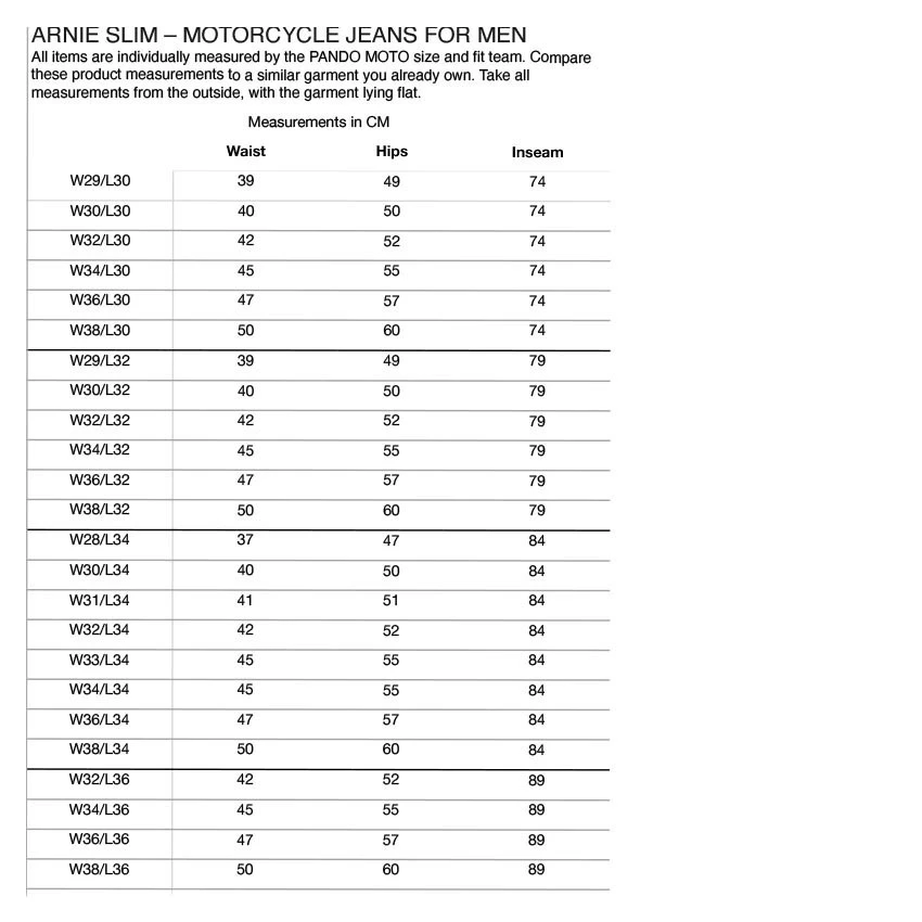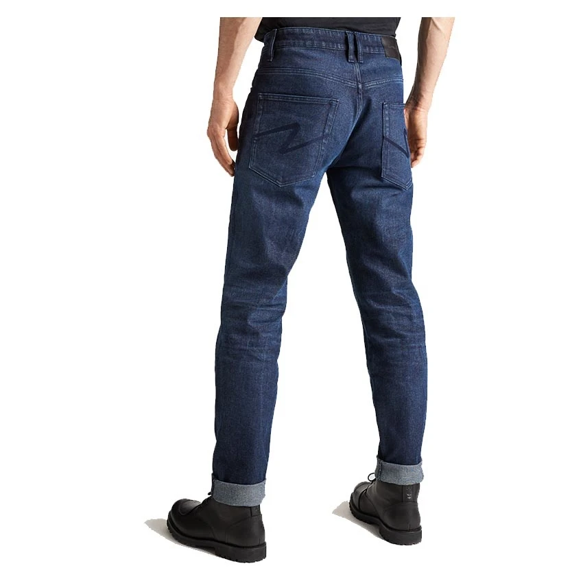 Single layer men’s motorbike jeans made from 14oz super strong and stretch Armalith® material. An abrasion-resistant and highly heat-conductive fabric reinforced with chain stitches. The Pando Moto Arnie Slim comes standard with level 1 protectors on the knees and hips. These jeans have a slim fit and regular waist, without any stitching on the outside for a plain and clean look.
