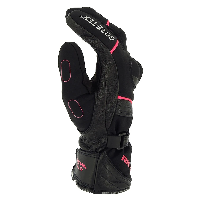 The Diana Gore-Tex dames motorhandschoen is Richa’s favourite because of their great fit and that comfortable combination of leather and textile. A breathable Gore-Tex membrane and 3M thinsulation work together to keep your hands dry and warm, and D3O material protects your knuckles. With the strap at your wrist you can make them fit perfectly. A winter must have!