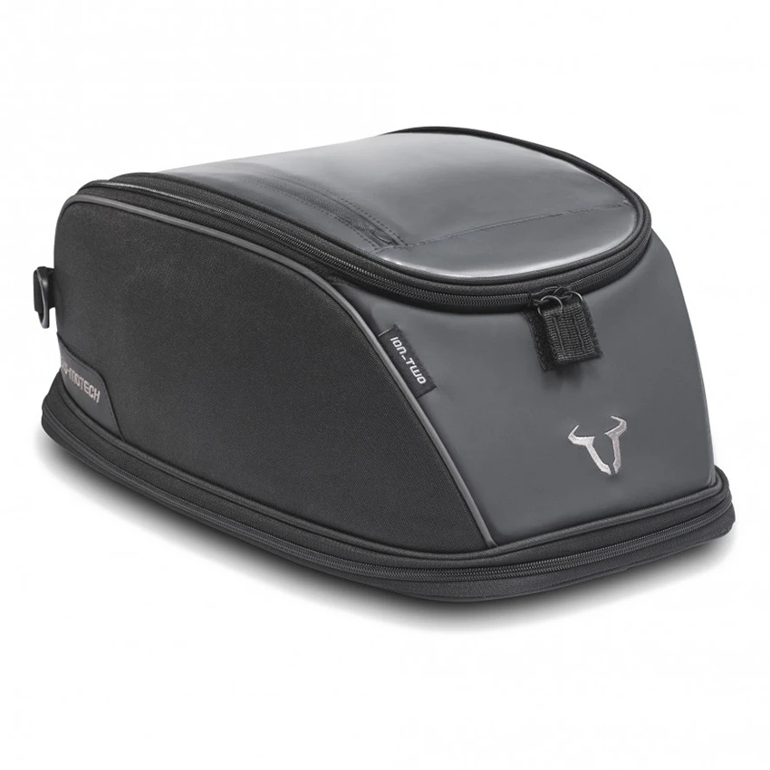 The tank bags from the new ION series from SW-Motech are made from 1600D Polyester and have an unrivaled price-quality ratio. The ION 2 from this series is a spacious Quick-Lock tank bag that fits perfectly on engines with a flat tank. Expand the volume from 13 to 20 l using the zippers. Mesh compartments in the interior for organisation of small items. Integrated map holder that also supports the touch function of digital devices.