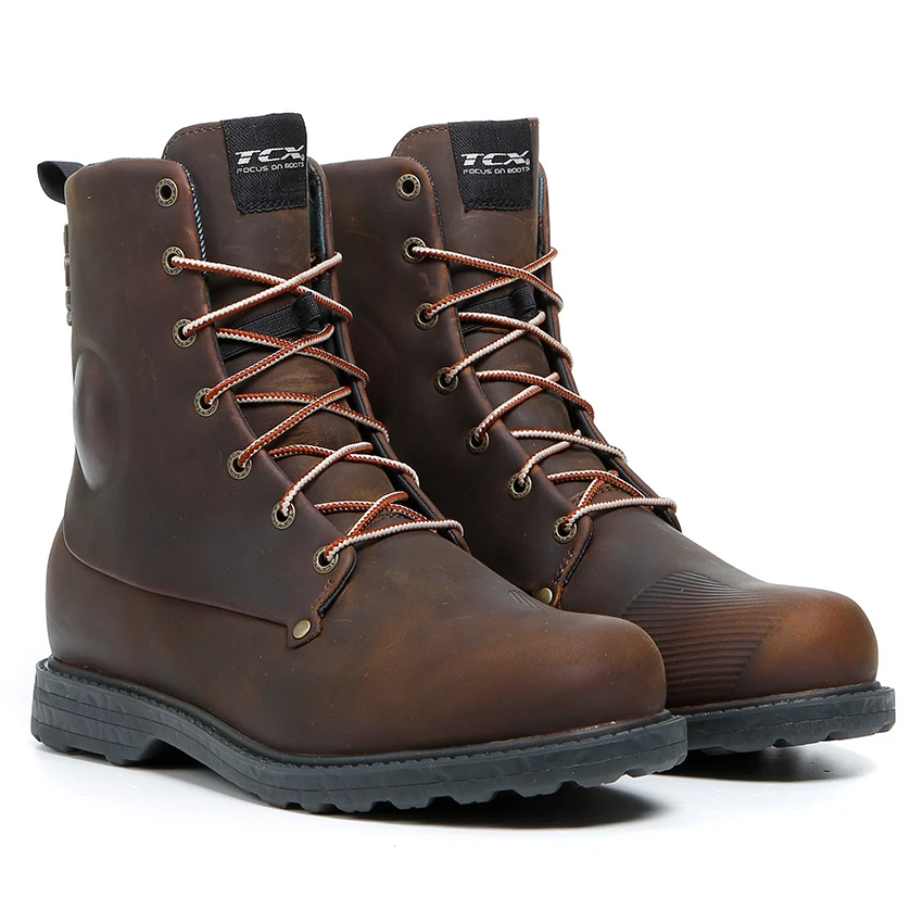 The TCX Blend 2 are waterproof motorcycle shoes made of full-grain leather with a T-DRY waterproof membrane and a vintage-effect pull-up finish.They ensure the highest level of safety through the protective inserts on the ankle and the reinforcements in the gear area, toe and heel. Groundtrax rubber sole for optimal stability, grip and abrasion resistance. The OrthoLite® insole offers perfect cushioning for the sole of the foot even after many uses and high levels of breathability, for the utmost comfort in any situation.
